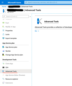 コンテナへの SSH での接続は、Azure Portal から行うのが簡単です。左側のメニューで下の方に行き、SSH を選べば良いのですが、その1つ下の「Advanced Tools」から説明します。