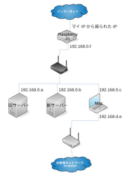 - 無線LANで自宅LANにつなぎ、固定IP(192.168.0.f)を振る