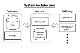 With WP RAG, WordPress site owners can easily create RAG systems / chatbots based on their WordPress posts. The following diagram shows the overall architecture: