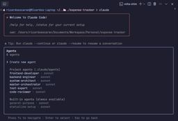 Here’s a practical example from my expense tracker project. I initiated a conversation with Claude and requested the use of the master orchestrator agent to handle the task: “Build me an expense tracker app…”